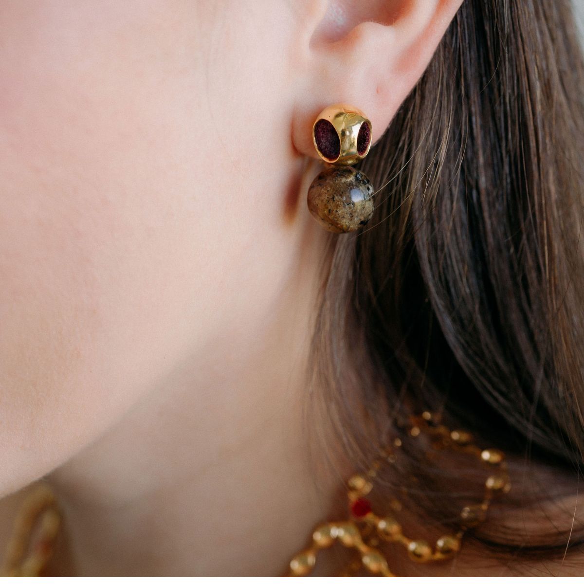 Monica Varela Jewelry empowers the opulent artwear seeker with cutting-edge designs infused by an evolving imagination, abstract art, and national semi precious gemstones. Ethically handcrafted by artisans in the Dominican Republic with an elevated blend of traditional jewelry techniques and sustainably sourced materials. Infinity Petite Amber Aretes