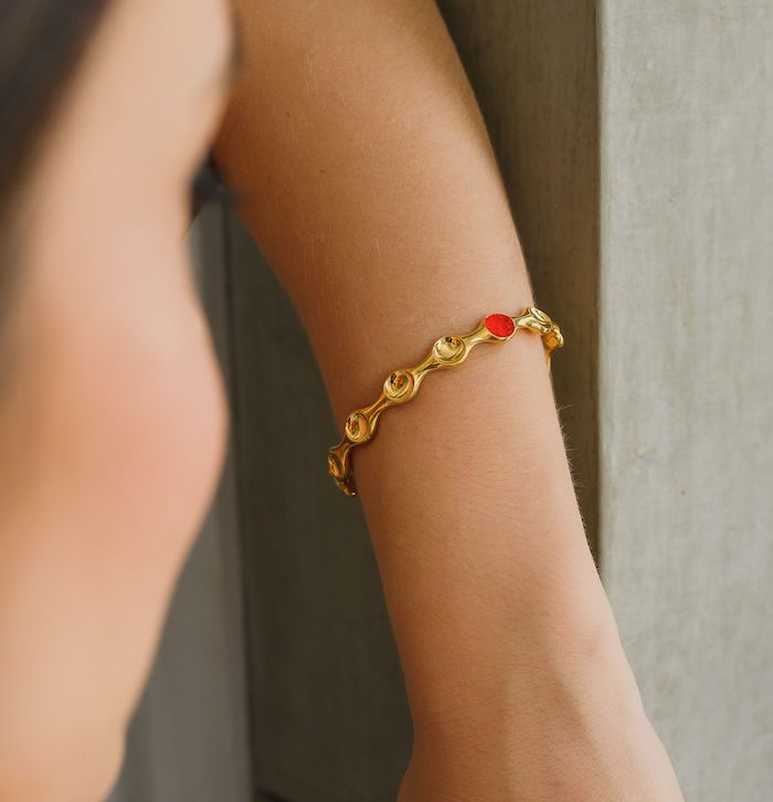 Monica Varela Jewelry empowers the opulent artwear seeker with cutting-edge designs infused by an evolving imagination and abstract art. Ethically handcrafted by artisans in the Dominican Republic with an elevated blend of traditional jewelry techniques and sustainably sourced materials. Margin Pulsera
