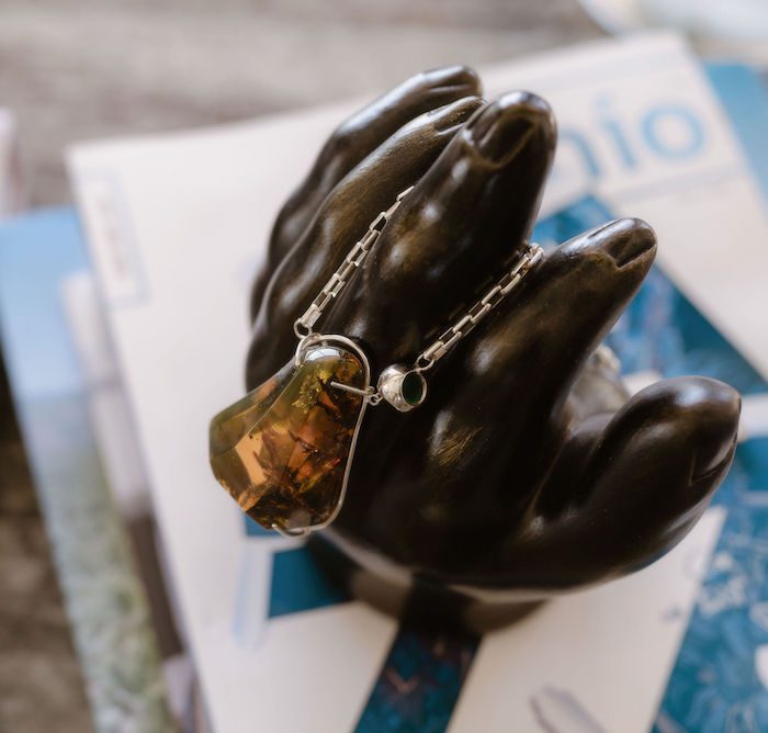 Monica Varela Jewelry empowers the opulent artwear seeker with cutting-edge designs infused by an evolving imagination, abstract art, and national semi precious gemstones. Ethically handcrafted by artisans in the Dominican Republic with an elevated blend of traditional jewelry techniques and sustainably sourced materials. Petite Amber Fancy Square Collar