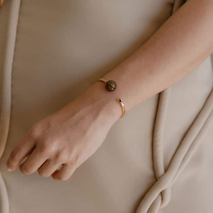 Monica Varela Jewelry empowers the opulent artwear seeker with cutting-edge designs infused by an evolving imagination, abstract art, and national semi precious gemstones. Ethically handcrafted by artisans in the Dominican Republic with an elevated blend of traditional jewelry techniques and sustainably sourced materials. Teeny Amber Pulsera